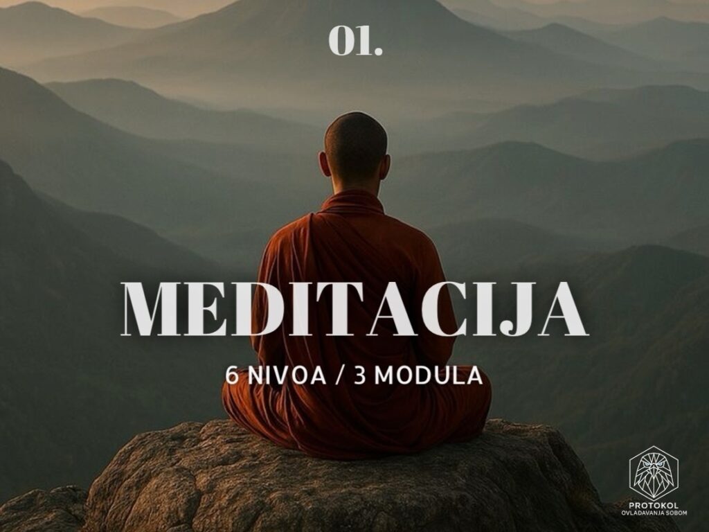 Veoma moćna meditativna tehnika iz protokola je glavni alat za ovladavanje sobom uz disciplinovano svakodnevno praktikovanje sa jednostavnim i jasnim uputstvima. Protokol traje 41 dan / 6 nedelja, i svake nedelje prelazimo na viši nivo u meditativnoj praksi, stvarajući snažniji pritisak na um ukorenjavajući i vraćajući vladavinu nad njim. Meditacija je najdelotvornija drevna tehnika za alhemizaciju svesti, rušenje iluzija i ovladavanje sobom.